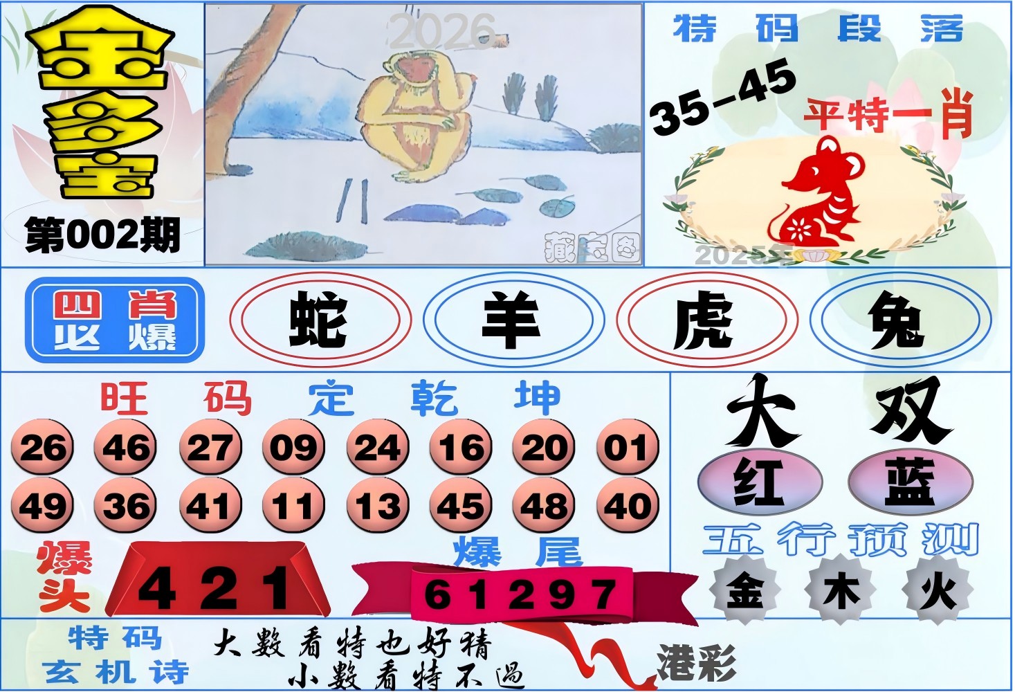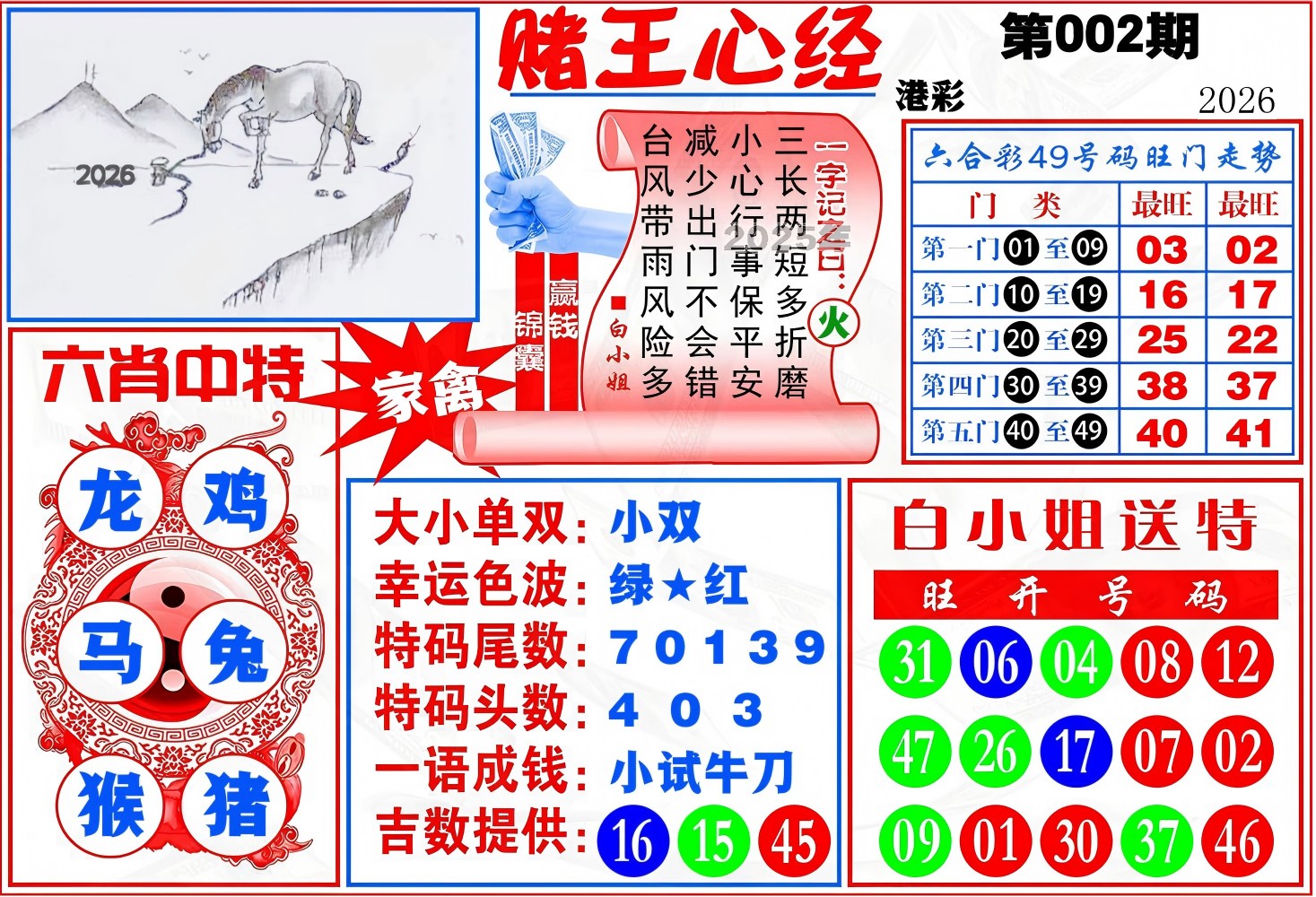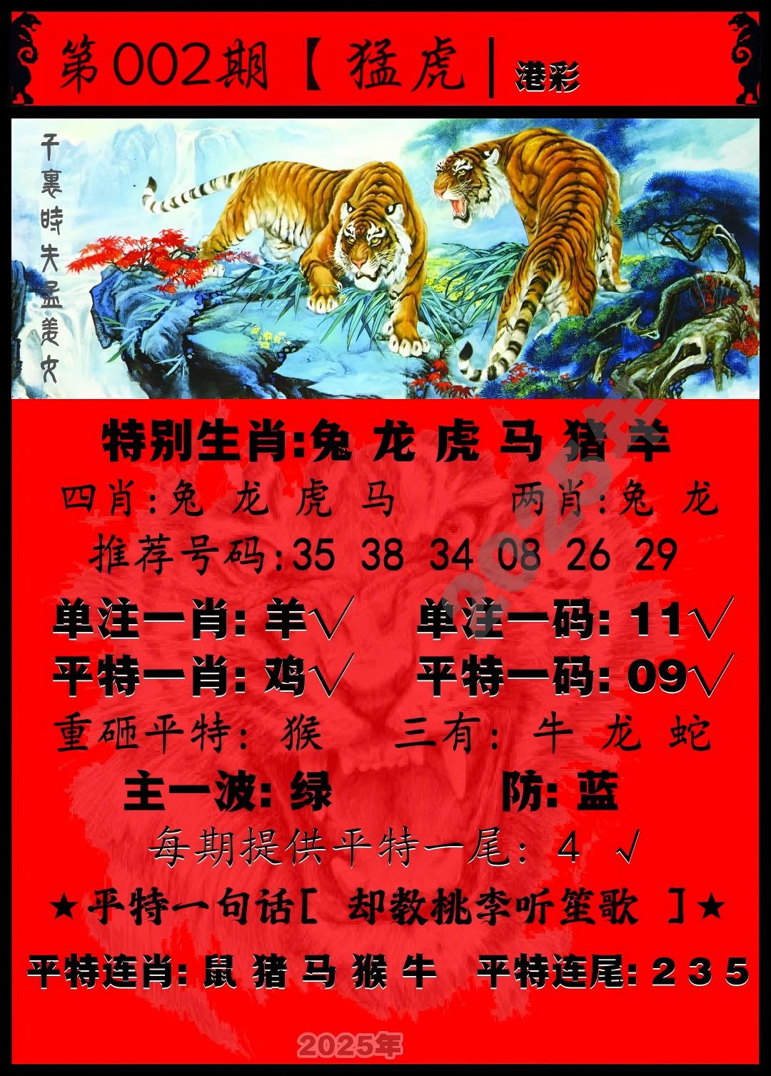 | 001期稳中③肖:虎狗蛇 |