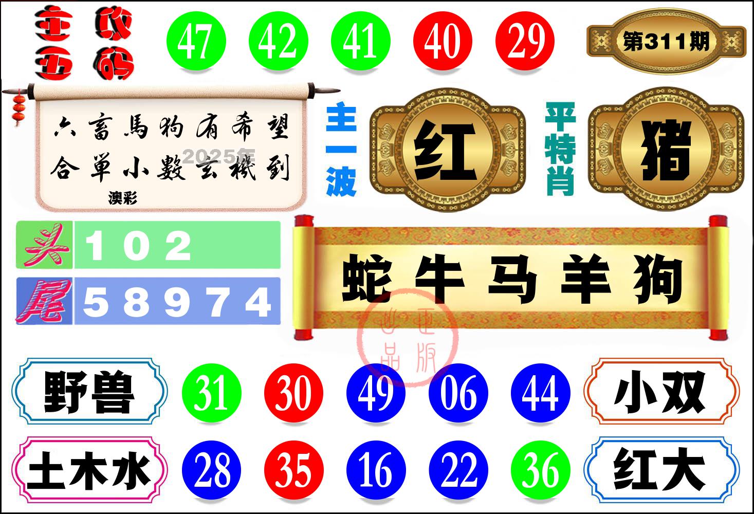 2025年 第311期最新开奖结果